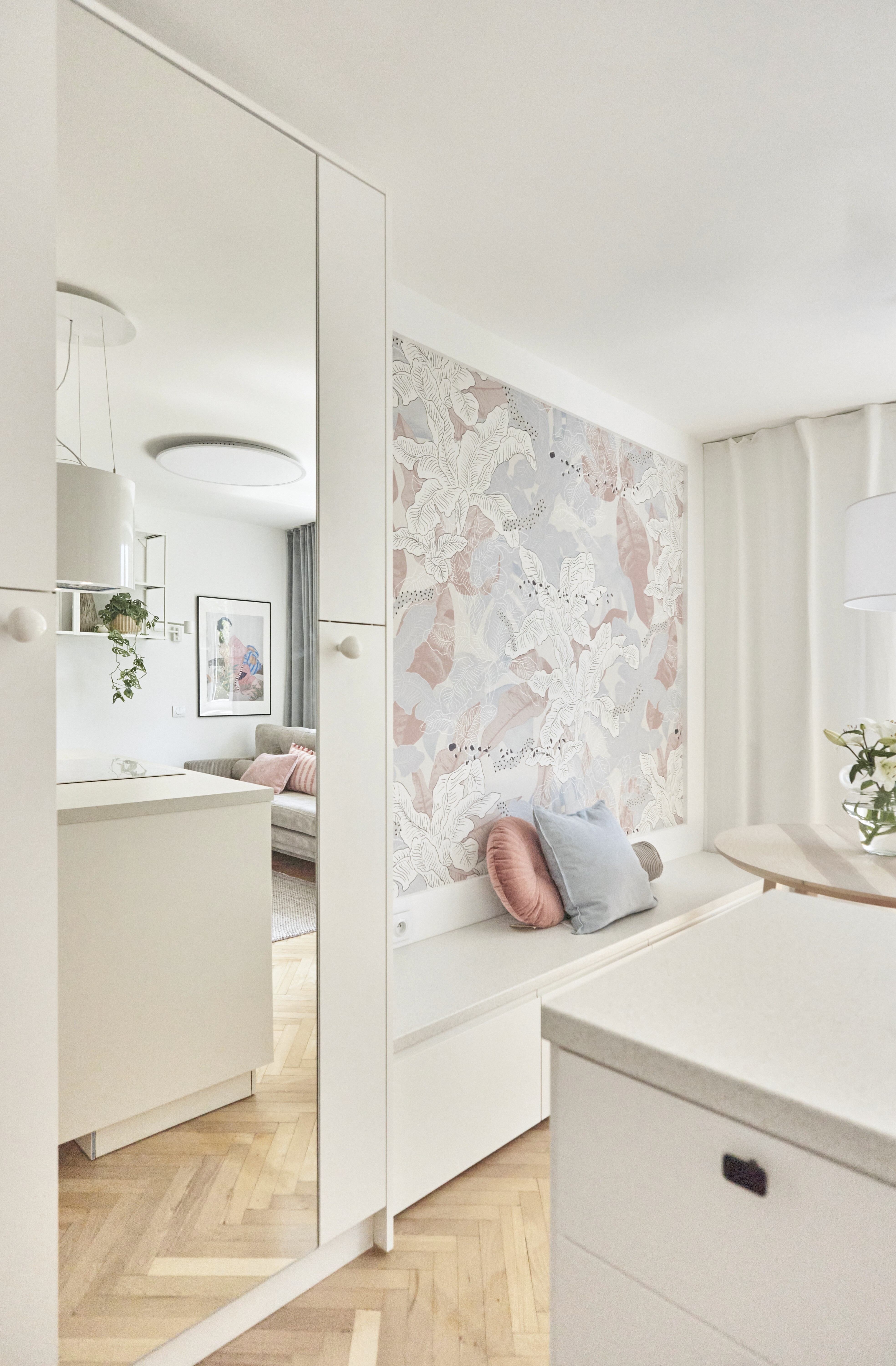 Mieszkanie po generalnym remoncie z całkowitą zmianą w rozkładzie pomieszczeń i funkcji. Całość zrealizowana z niskobużetowym założeniem