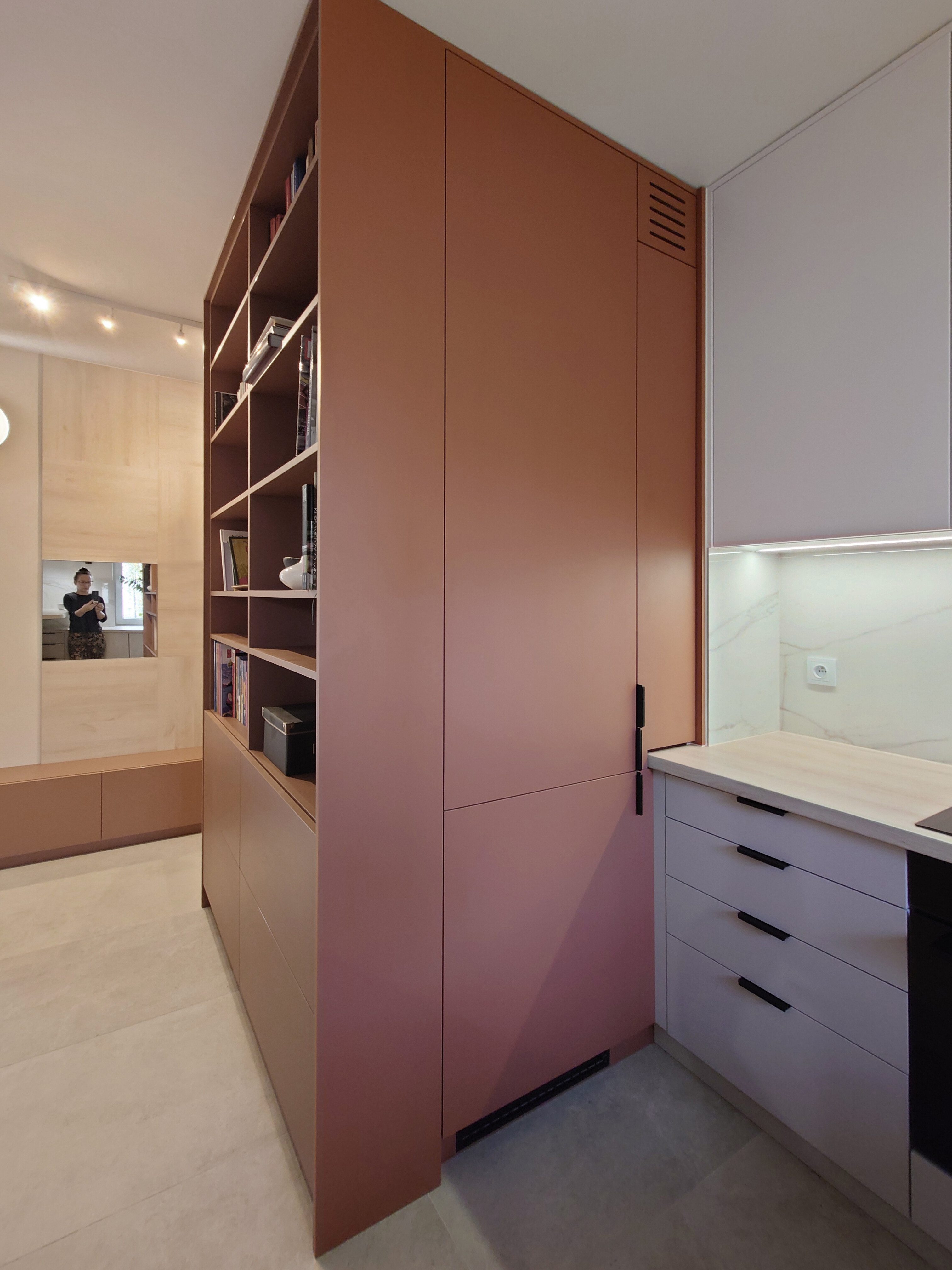 Mieszkanie w bloku dla rodziny czteroosobowej, dwupoziomowe, przebudowa i aranżacja obejmowały kuchnię, salon łazienkę i strefę wejścia do mieszkania