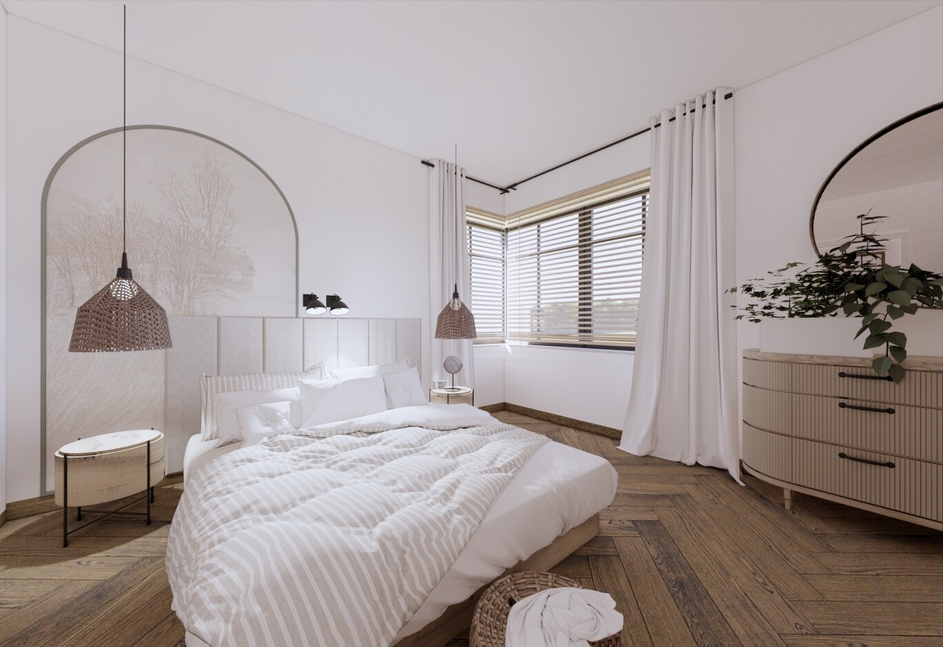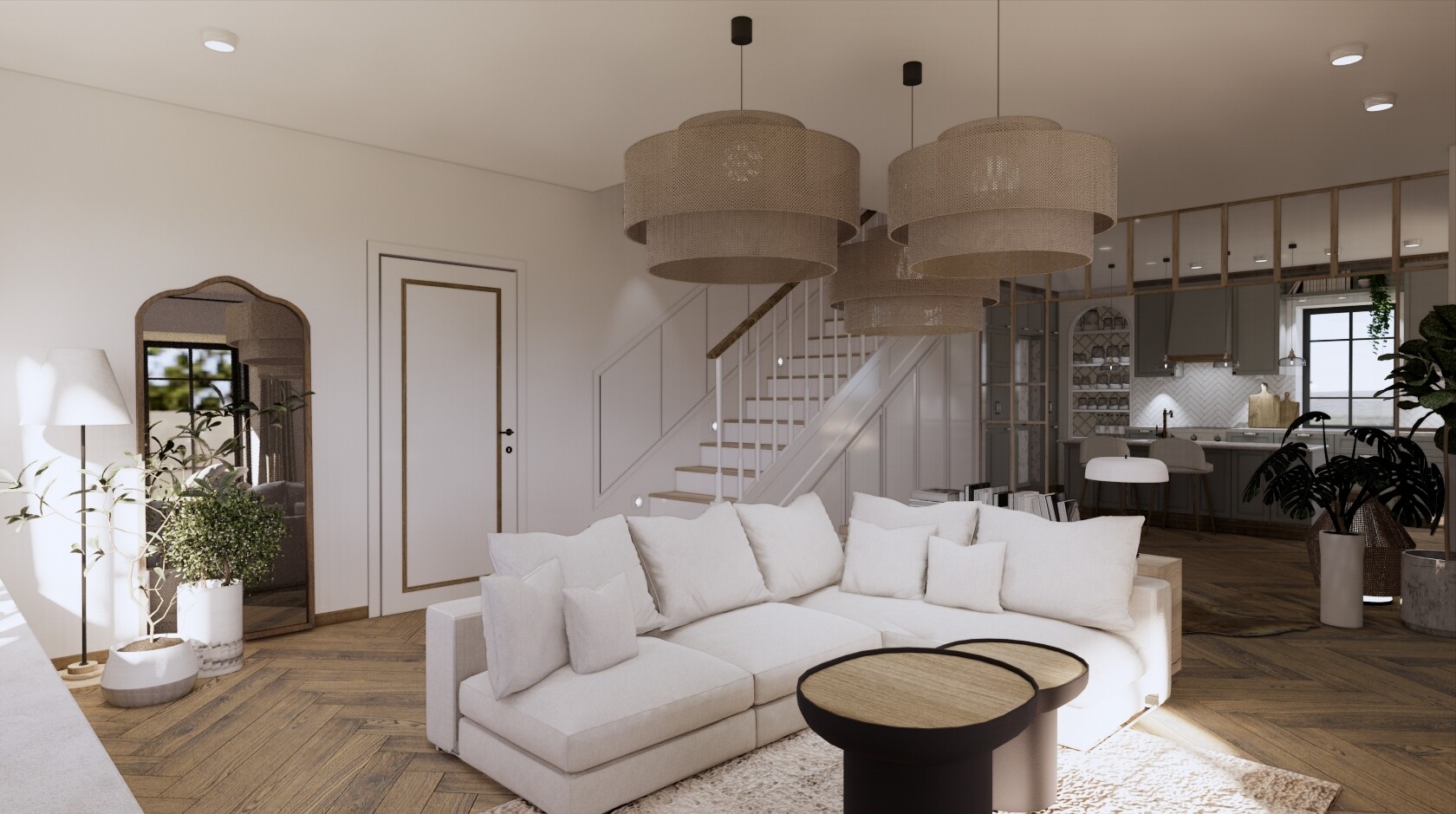 Dom blisko lasu, właściwie w cieniu drzew. Założenie było takie, że całość ma być bardzo przytulna, a wnętrze ma otulać mieszkańców.