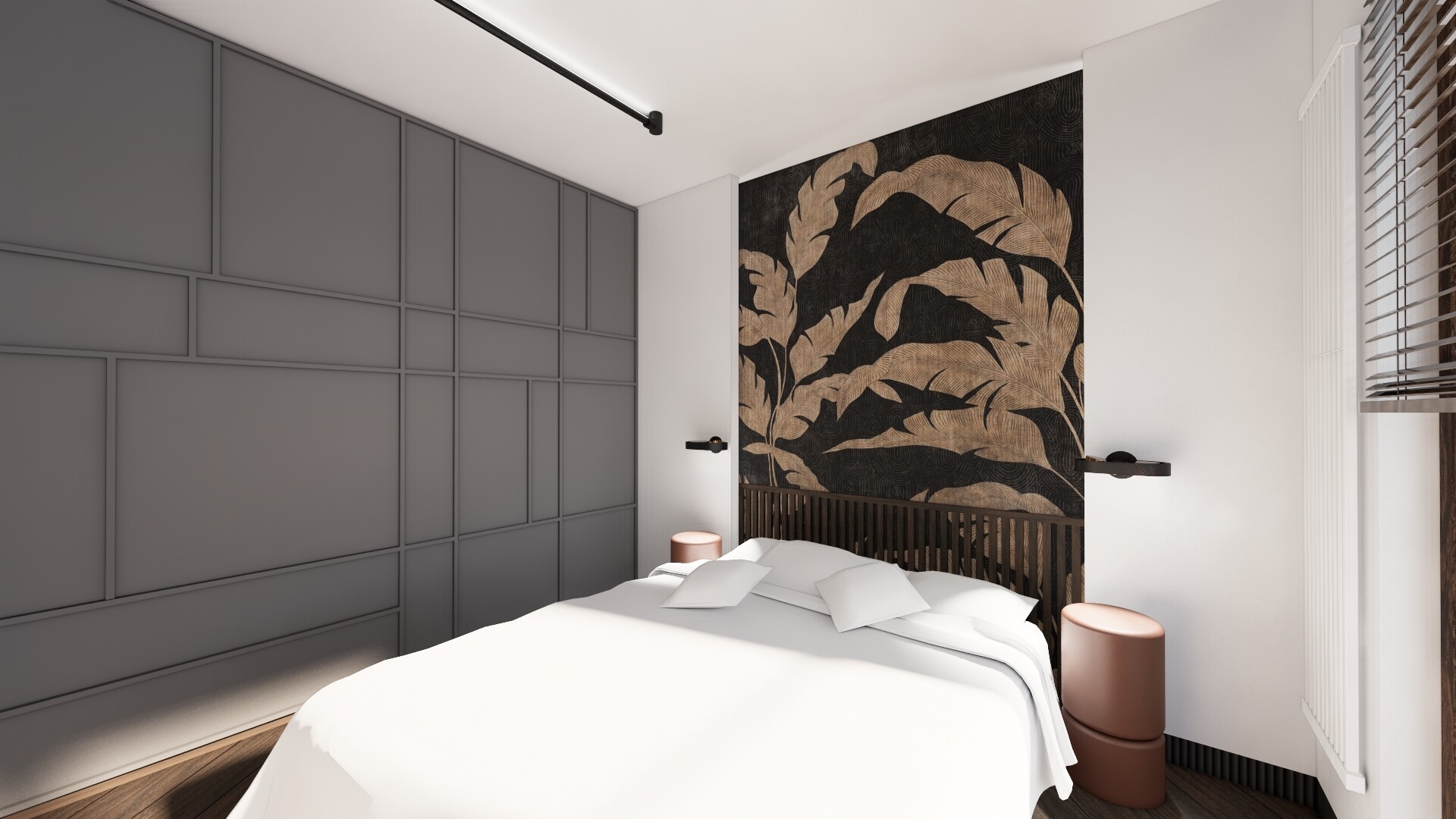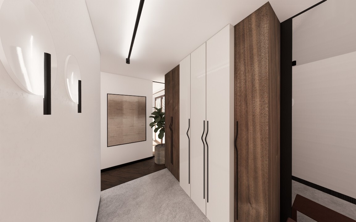 Mieszkanie zapracowanej osoby, która jest sama, ze względu na brak garderoby, w sypialni ma znaleźć się duża szafa, która pomieści nie tylko obrania.